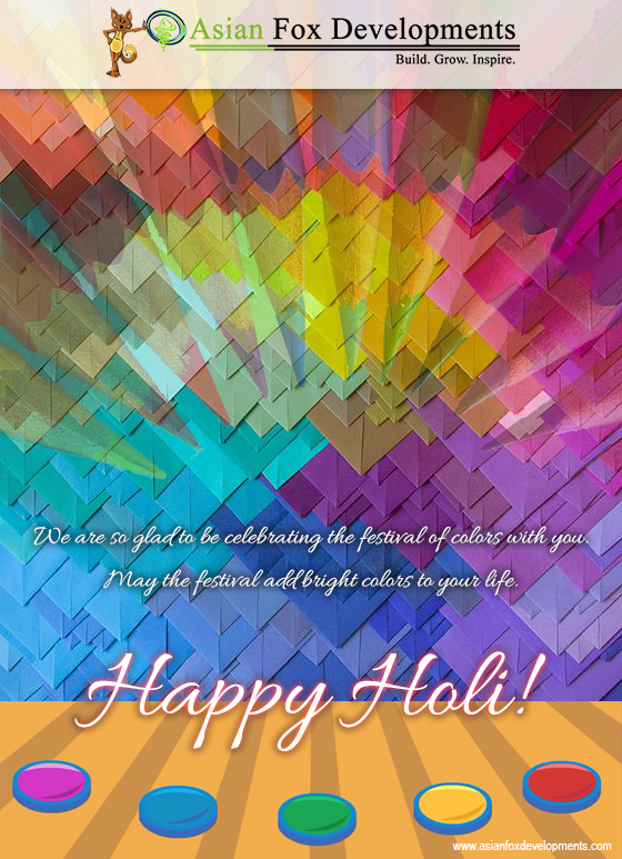 We are so glad to be celebrating the festival of colors with you. May the festival add bright colors to your life.