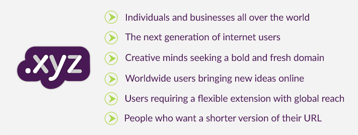 .XYZ is for everyone, it is one of the most flexible domains on the internet clubbed with being most affordable during this promotion period, a .XYZ is for every website anywhere and everywhere.Who is .XYZ Domain for